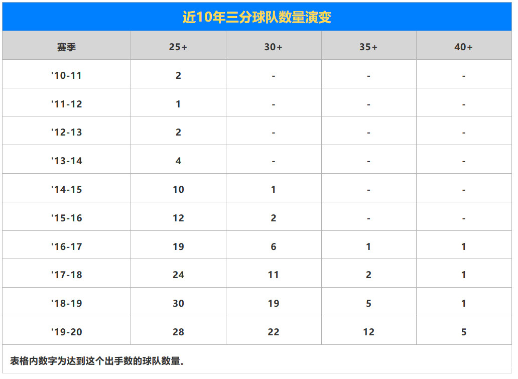 種種跡象顯示,三分球出手數仍然在暴漲之中,絲毫沒有停止增長的意思,沒有人知道何時是個頭。