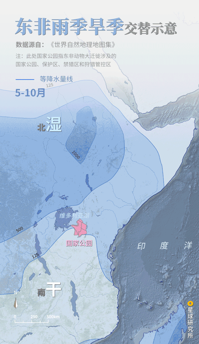(東非動物大遷徙的路線,製圖@鞏向傑&張靖/星球研究所)