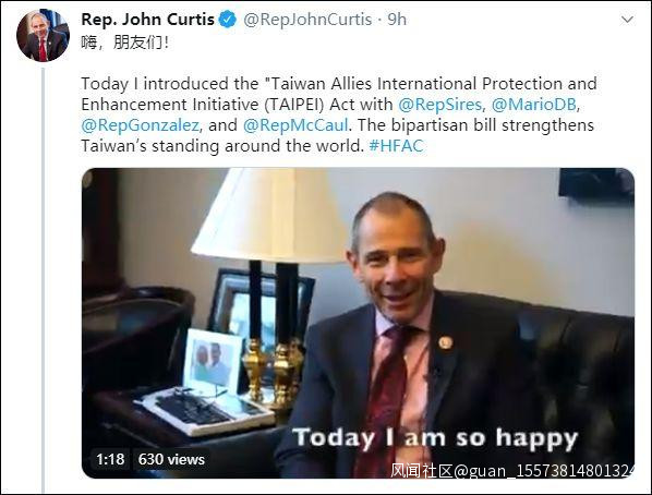 10月18日,眾議院版本的“台北法案”才由共和黨籍眾議員柯蒂斯帶頭提出。也就不到兩週後,眾議院外委會就將對其進行表決。據柯蒂斯説,眾院版本的“台北法案”也是為了提升台灣的國際地位。