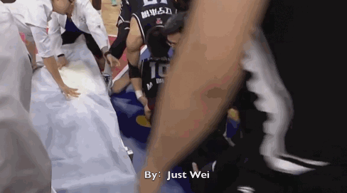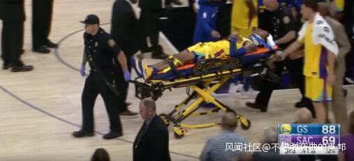 這個場景在上賽季NBA中也發生過。當時勇士客場挑戰國王,第三節最後40秒,麥考上籃時碰到卡特肩膀,身體失去平衡後倒地。麥考的受傷情況與叢明晨很相似,場邊隊醫上來後,先用板固定住麥考的身體,將他抬上可升降擔架,再用扣帶將麥考的頭部、腰部、腿部固定在擔架上,最後將他推出賽場。