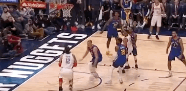在上賽季掘金與雷霆的賽場上,海王亞當斯看到被晃飛的普拉姆利,直接扔掉籃球,用雙手托住他,起身後還拍拍他的頭。