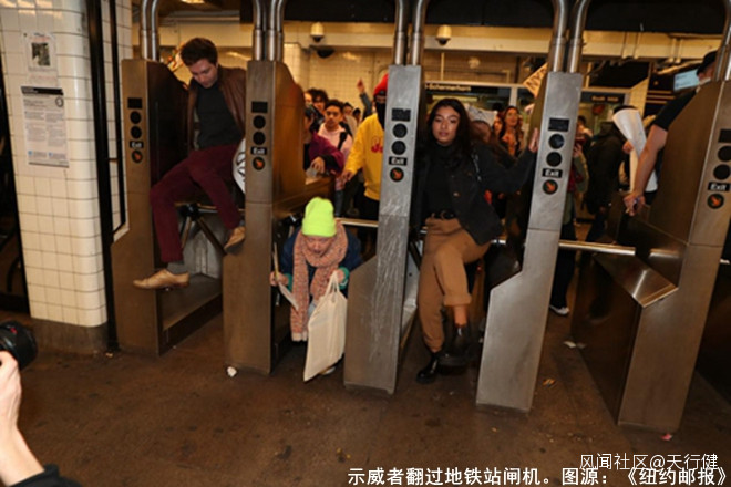 這一幕,關於辱罵執法警務人員、打砸公用公交工具、乃至衝撞地鐵閘機等等,想來大家並不陌生,令人陌生的是,居然也在美國發生,且發生在美國著名城市紐約;套用美國國會山“老婆婆”一句話,這一幕就是“美麗風景線”。