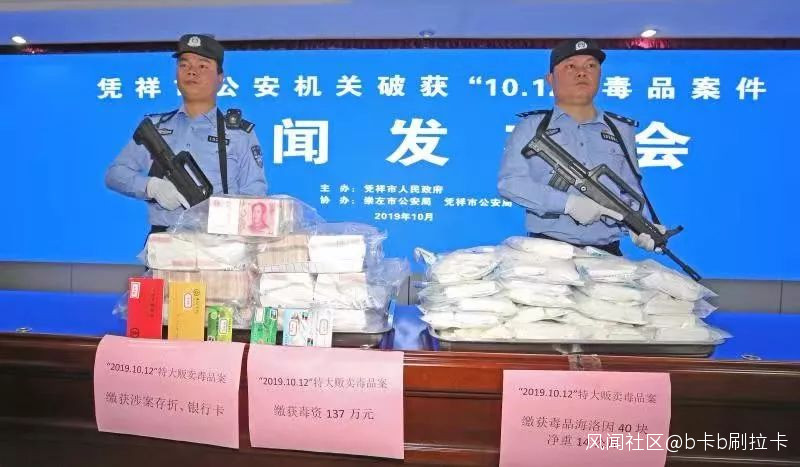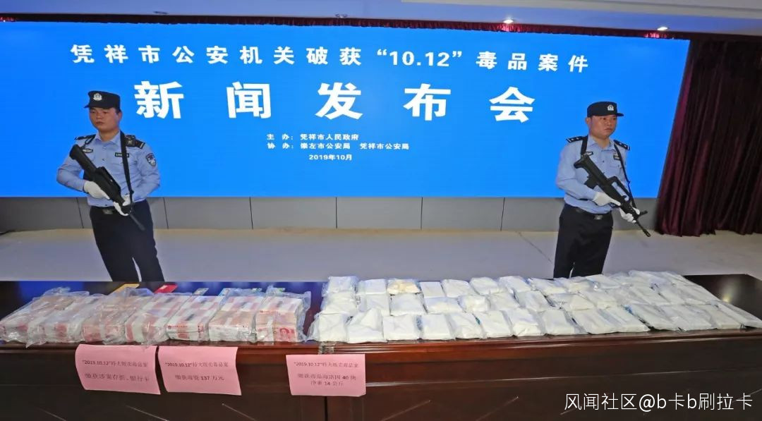 10月29日,憑祥市公安局召開新聞發佈會,當場展示繳獲毒品海洛因40塊重約14公斤,繳獲毒資137萬元、查扣涉案車輛5輛,全鏈條打掉了歐某曉、彭某俊、黃某金、梁某傭等5人組成的特大販毒團伙。