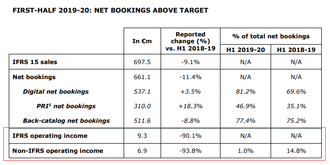 育碧在週末發佈了2019-2020上半財年的公司財報(育碧的一個新財年從每年4月1日開始,2019-2020H1既2019年4月1日至2019年9月30日),由於上半年兩款3A大作《全境封鎖2》和《幽靈行動:斷點》的銷量都“沒有達到預期”,導致育碧上半財年利潤相比去年同期驟降-93.8%。