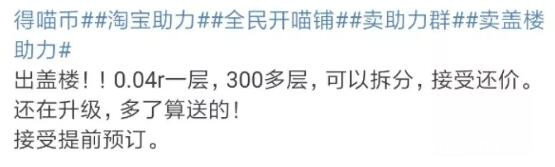 賣樓的還會一起抱團,依據賬號的淘氣值、等級不同,與是否擁有會員的區別,有償出售自己的助力次數。