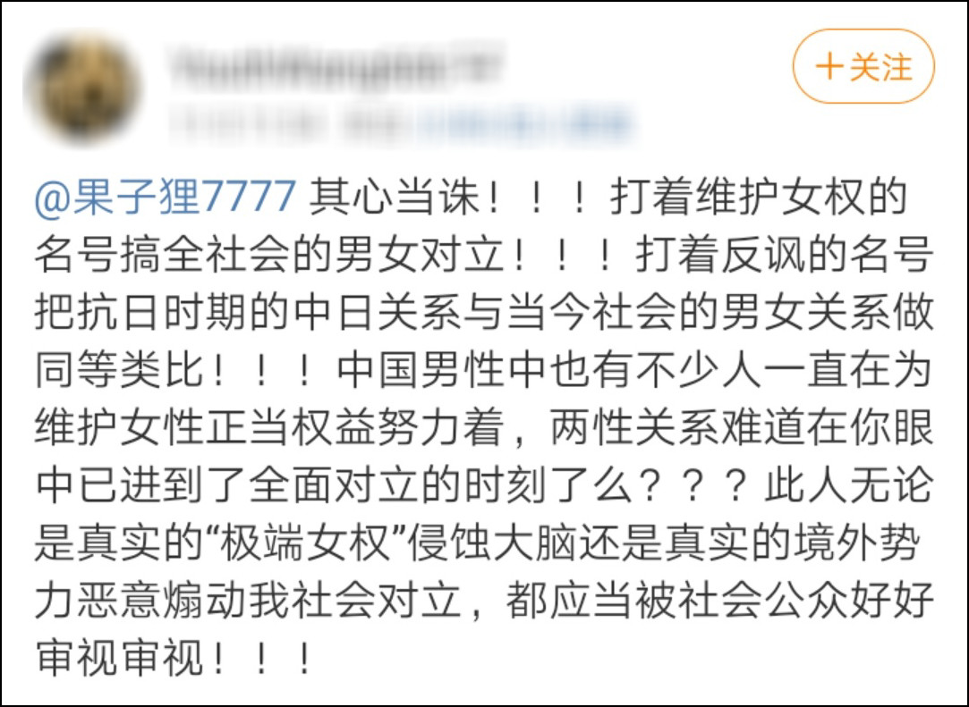 事實上,這些網友這樣想就正中了@果子狸7777 等一眾“女拳分子”的下懷。