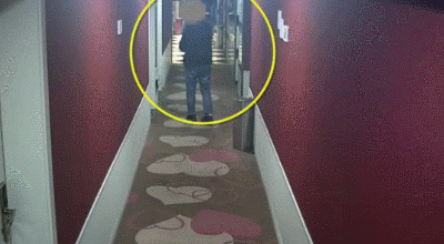 在趕到這家酒店之後,民警從工作人員口中得知,這段時間的確有一名陌生男子行為比較可疑,經常徘徊在酒店的走廊裏也不消費。在調查過酒店監控之後,發現確實有一名可疑的年輕男子。在監控畫面中,這名男子時不時地將自己的耳朵貼在酒店的房門上,或者趴在地上往屋裏面看。