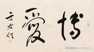 説到標準草書書寫,這裏還有一個案例,能説明即便是標準草書作品,也應以“易識”為第一標準來創作。例如,孫中山先生曾為于右任先生題寫中堂:“博愛”。于右任先生此後也常常寫“博愛”兩字的標準草書。但是,其中“愛”字,並未按經典標草的寫法。標準草書“博愛”的古典、經典寫法是: