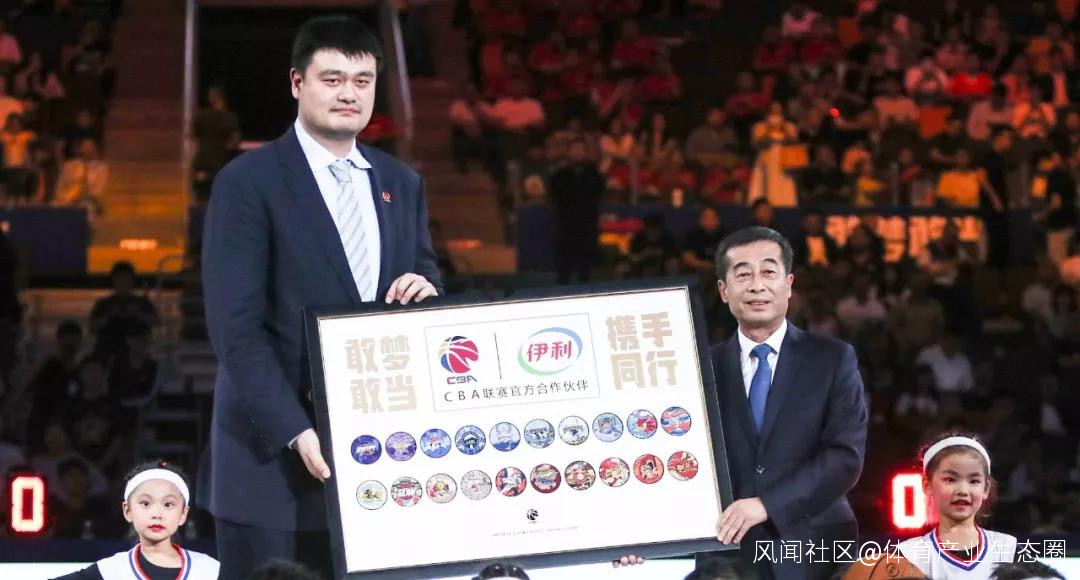 CBA新賽季的揭幕戰上,中國籃球協會主席、CBA聯盟董事長姚明與伊利集團執行總裁張劍秋共同宣佈伊利成為CBA聯賽官方合作伙伴。