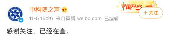 15時26分,中國科學院認證微博賬號@中科院之聲發博表示,“感謝關注,已經在查。”