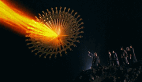 劍陣PK鐳射光,為保持視覺構圖,竟將畫面上的演員“定格”,再把特技鏡頭嵌進畫面裏,在當年來説,聰明。
