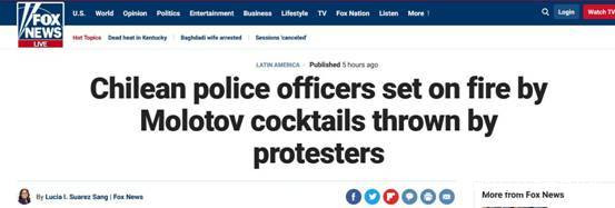 據福克斯新聞報道,正在智利報道示威活動的路透社東南亞地區首席攝影記者席爾瓦(Jorge Silva),當時站在聖地亞哥巴克達諾地鐵站附近時,看到了上述一幕。“我意識到一名警察因燃燒彈身上起火了,她的團隊正在努力滅火。”席爾瓦説。