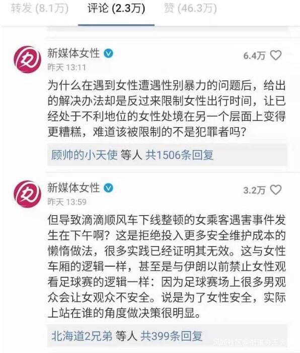 所以一丁點不意外,該公告中的運營時間被指性別歧視,女人們不開心炸鍋了,憑什麼我們女人晚八點後不能打順風車,官方赤裸裸歧視我們女同胞呢?