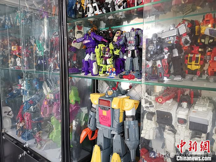 這期間,孫世前開始用掙來的錢自己買機器人手辦。時至今日,孫世前仍在工作室裏擺着滿牆的機器人手辦、玩具。他説自己沒具體算過,“大概收了有一萬多個”。