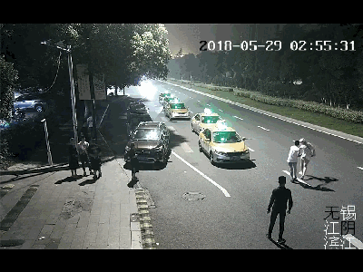 2018年8月22日,湖北。三個人並排走在馬路中間,靠近路中央的一人突然被身後的轎車撞飛 ,左腿骨折,送進醫院治療。