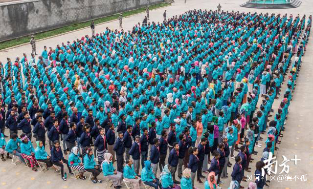 9月8日,位於埃塞俄比亞首都亞的斯亞貝巴的華堅國際輕工業鞋城廠房外,兩千多名中非員工集合,準備進行早會。圖源:南方網