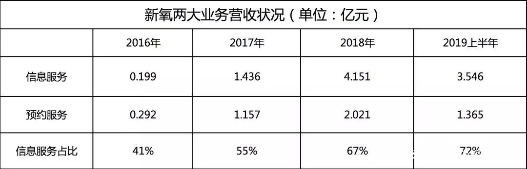 趣識財經整理發現,信息服務收入佔新氧全部營收比重在不斷上升,從2016年的41%,至2019上半年的72%。並且,信息服務收入增速越來越快,以2019年上半年為例,同比增長104.6%,同期預訂服務收入增速為47.5%。
