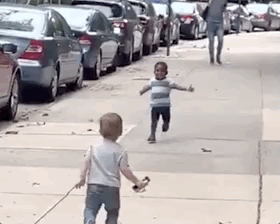 一看到對方,兩個寶貝立馬張開雙臂,邁動小短腿,踉踉蹌蹌奔了過去,重逢的喜悦隨着距離的拉近一點點膨脹。