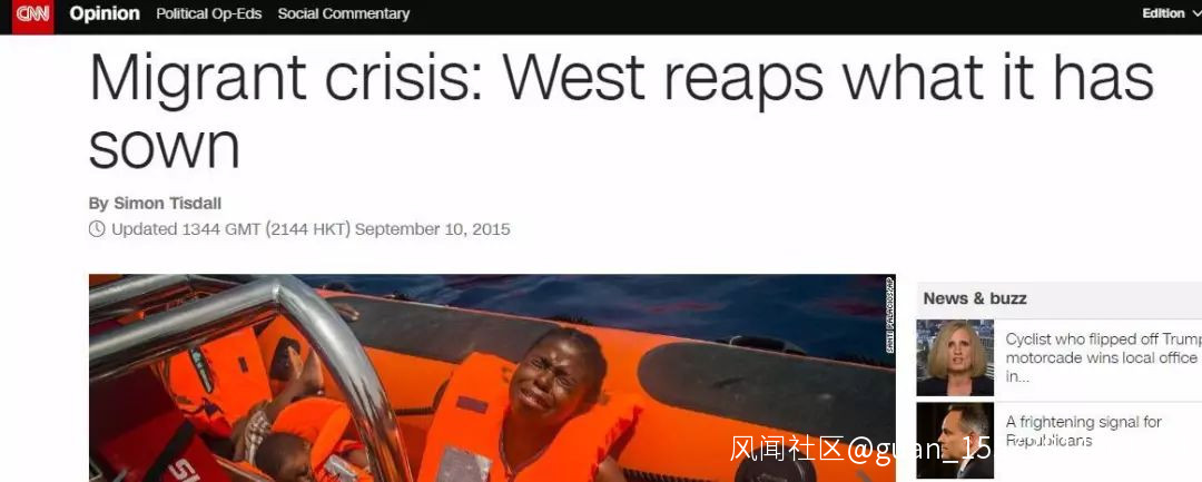 ▲圖為CNN對中東難民危機的一篇評論文章:西方吃到的苦果,是西方自己種下的