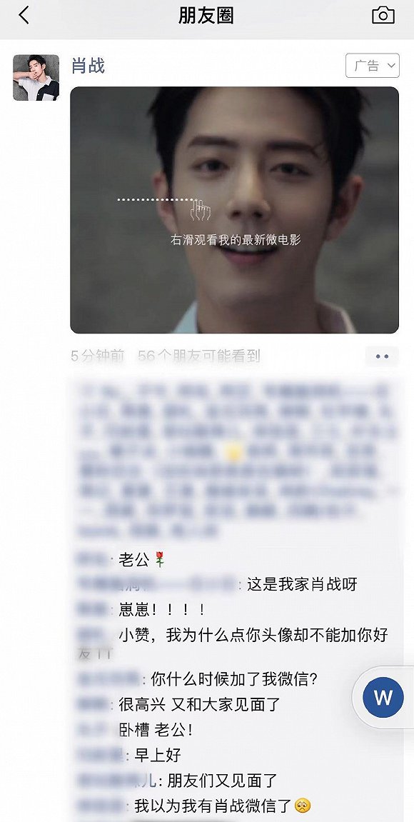當然,廣告主和平台知道,更能點贊評論甚至轉發慾望的用户羣體,還有明星的粉絲們——“飯圈女孩”已經成為品牌收割的重要流量。當“鹿晗”、“肖戰”、“楊冪”出現在朋友圈,就可以激情點贊,或是大膽表白“為什麼點你頭像卻加不了好友?”——如果你不介意在朋友圈暴露粉籍的話。