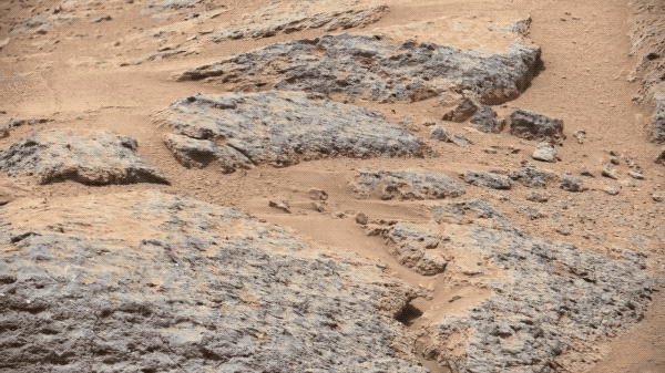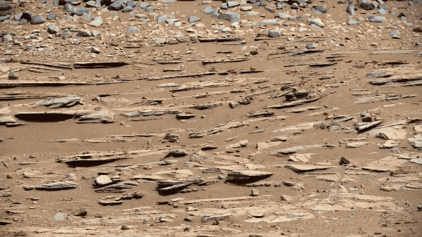 這是在好奇號執行任務第120天(火星日)時拍攝到的一個叫做 Shaler 的岩層。這些圖案顯示的是過去河流的痕跡。