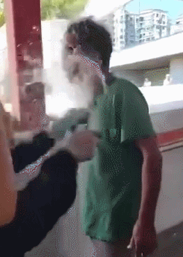 暴徒們不斷叫囂,綠衣大叔保持跟暴徒理論。從視頻拍攝的多個角度來看,在此期間,綠衣大叔只言語理論,並未主動跟暴徒發生肢體衝突。