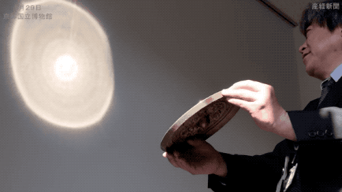 這樣在打磨後,鏡子正面實際上變成了背面的互補浮雕,也自然呈現出了紋路,只不過這種差異只有0.01毫米左右,肉眼看不見而已。這個細微的浮雕在明亮的平行光的照射下,就會彰顯隱藏的圖案。