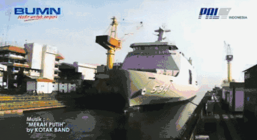 ▲印尼泗水造船廠建造的“望加錫”級船塢登陸艦下水