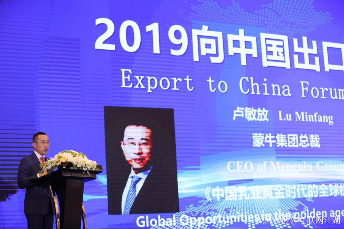 (蒙牛集團總裁盧敏放出席“2019向中國出口”論壇並發表演講)