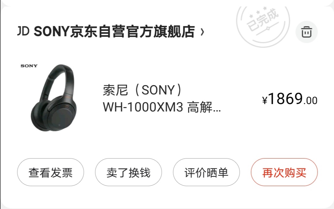 首先最貴的單件商品,索尼WH-1000XM3,京東11月1號預購的。