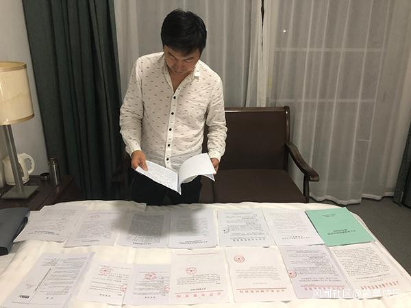 薛鋭權在整理申訴材料。澎湃新聞記者 陳緒厚 攝