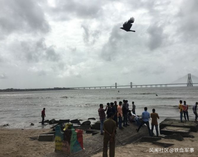 孟買雖然也是座沿海城市,但海水還是髒兮兮的,海邊就是垃圾堆,一隻烏鴉在啄食着垃圾堆旁一隻死烏鴉的屍體,頗有生化危機的趕腳。畫面感太強就不放圖了。但這並不影響孟買青年們吹吹海風,觀海拍照的心情。
