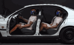 當發生碰撞事故時,如果前排乘客不繫安全帶,頭部會由於慣性而撞到擋風玻璃上。而身處後排的乘客同樣會因為慣性而向前移動,兩側乘客頭部則會撞擊到前排座椅上,頸部會有折斷的可能,而中間的就更不用説了,從擋風玻璃飛出去的案例實在是太多了。