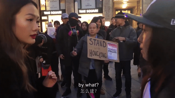 班雅倫:我平常看到這些示威者跟內地人爭論的視頻挺多的,他們很喜歡用的一種手段就是,“你講普通話我們聽不懂”。然後他們又喜歡講英語。我當時想錄一個視頻,就是想要發到網上給大家聽、給大家看。我想用多種語言,也方便世界各地的觀眾來看,我沒有背後剪輯他們沒有説的話。