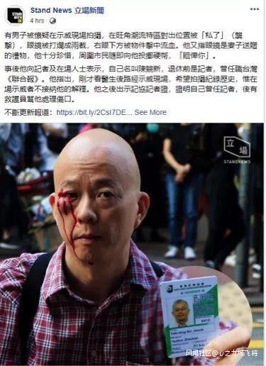 “人超好”的港籍台媒記者,也被暴徒毆打了來源:環球時報微信公號