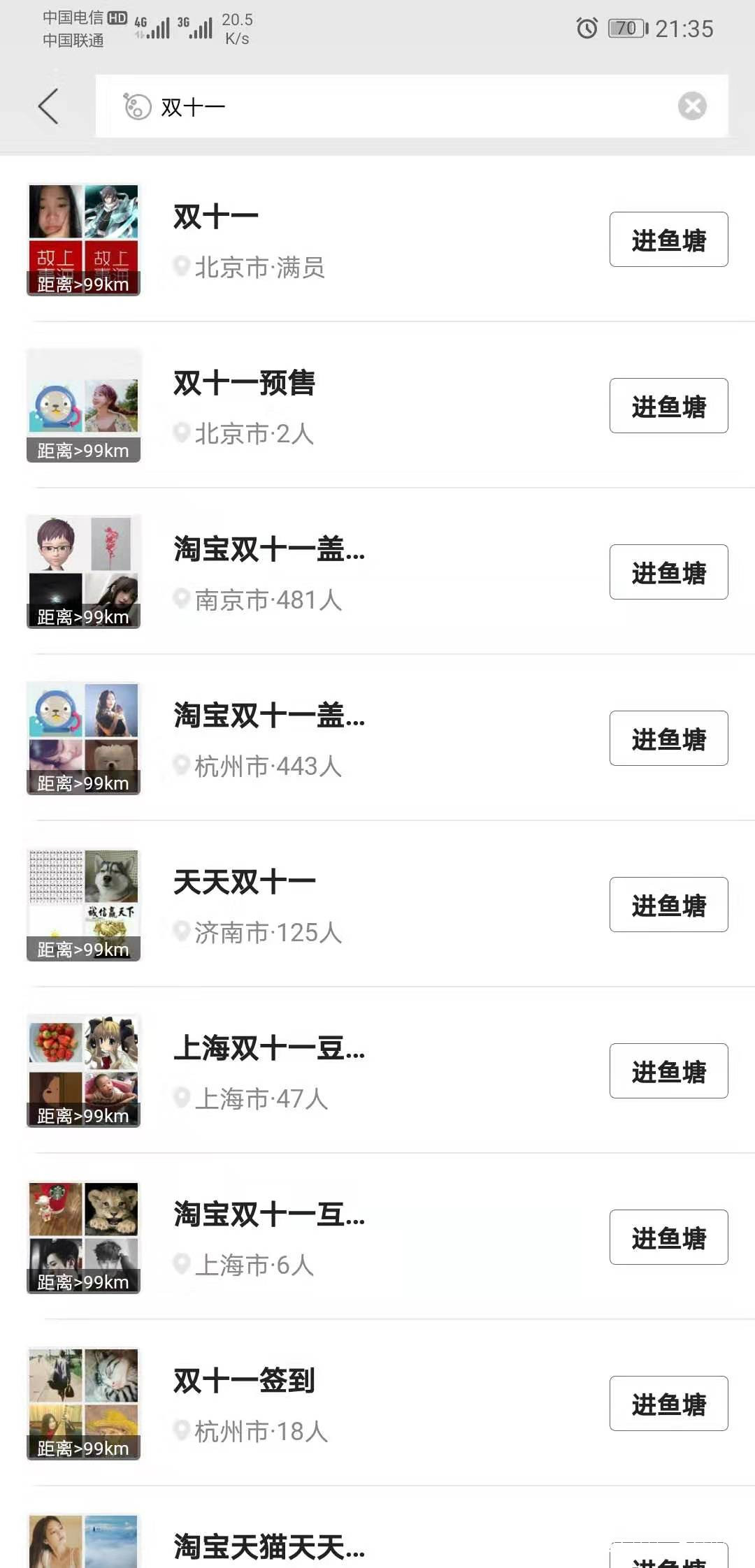 在閒魚魚塘入口搜索“雙十一”,彈出的搜索結果中,“雙十一預售、雙十一蓋樓、淘寶雙十一互助合作”等魚塘比比皆是,這意味着,相對於其他的閒置物品交易平台,閒魚的雙十一作戰週期被無限拉長,前期社區氛圍的鋪墊,也已經積累下相當一部分流量。而基於已有的流量基礎,閒魚後續的操作空間被進一步打開。