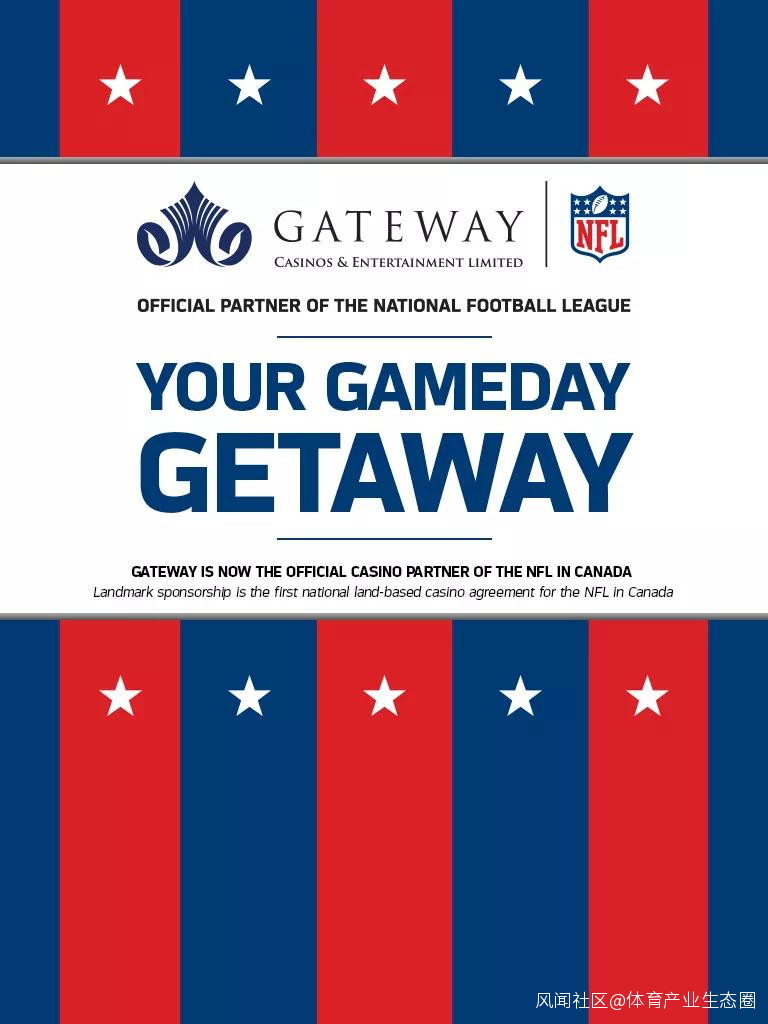 全稱為Gateways Casinos & Entertainment的公司,是一家成立於加拿大的公司,其主要營業地點位於加拿大不列顛哥倫比亞省的Burnaby。基於房產數量和遊戲數量,該公司也是加拿大規模最大,最多元化的遊戲和娛樂公司之一。2019年,他們也加入了NFL的贊助軍團中。贊助合同價值為每年1200萬美元。