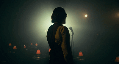 推開門,剪接的卻是一個非常規的鏡頭:鏡子裏的亞瑟,也就是小丑。