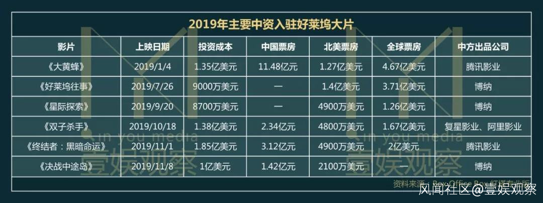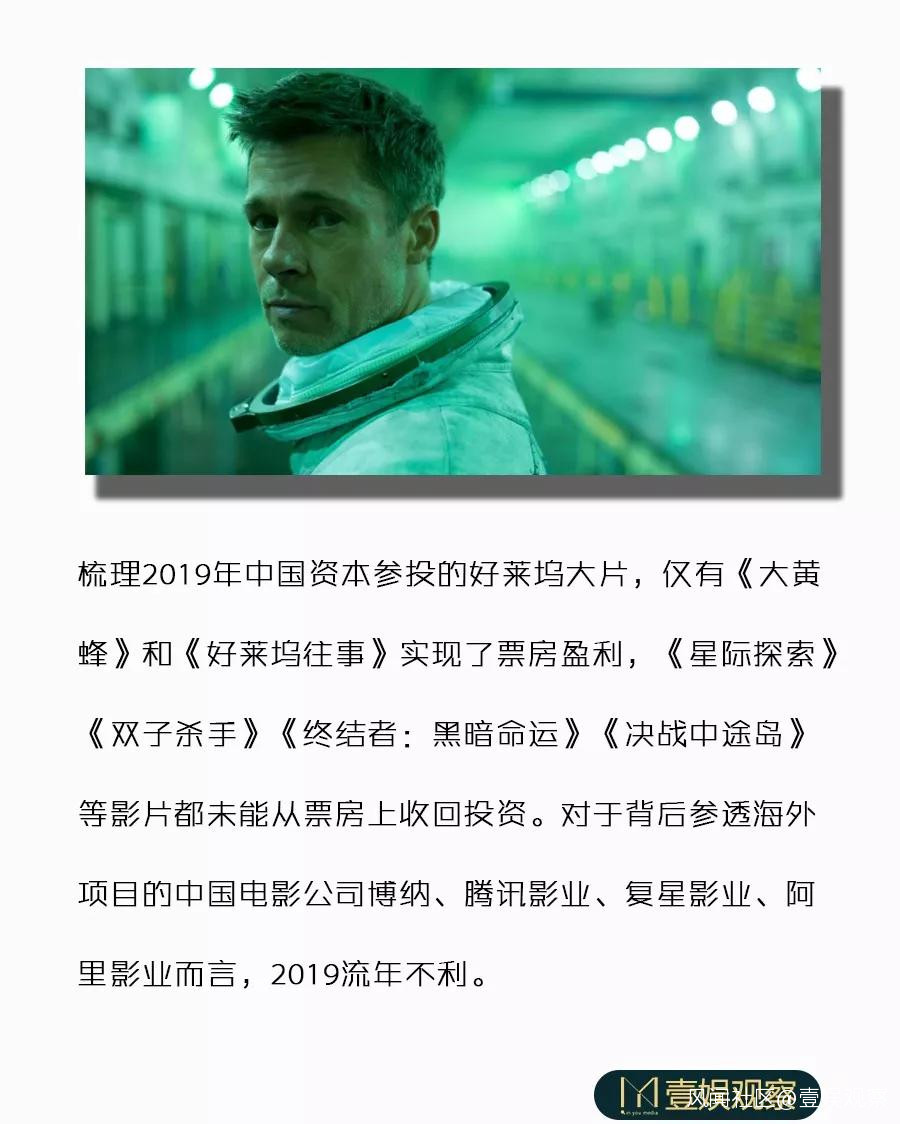 不僅博納影業,2019年騰訊影業、復星影業、阿里影業對好萊塢大片的投資都顯得不太順,中國資本的好萊塢之旅流年不利。