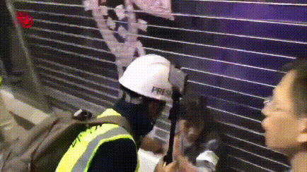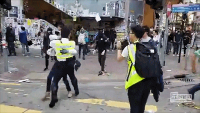 11月11日,一名警察在維持街頭治安的時候,被幾個暴徒糾纏住,一個人拒捕,抱着他不放,另一個人就找機會想搶警察的槍,警察被迫開槍。