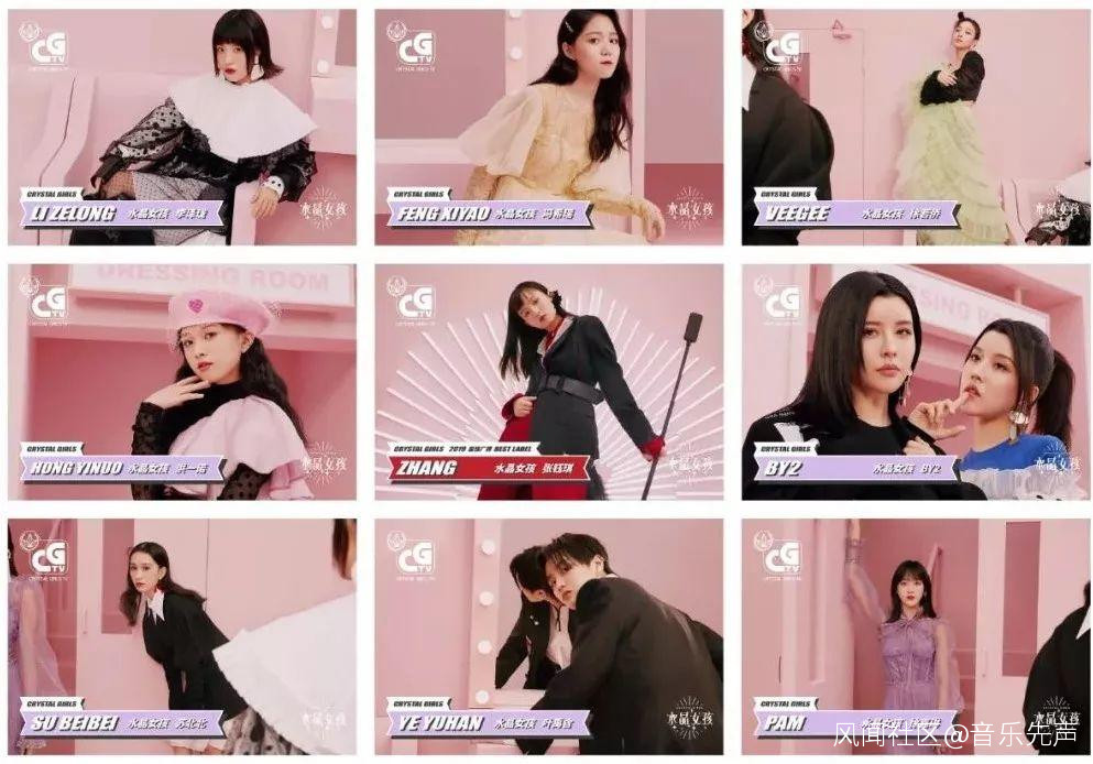 明妹羣像:****新生一代的自我表達據瞭解,《水晶女孩》音樂合輯共收錄8首單曲和1張EP,以“4+4+1”的方式呈現出“治癒水晶”洪一諾、馮希瑤、葉禹含、Pam徐嘉琳,“能量水晶”BY2、李澤瓏、Veegee徐若僑、蘇北北以及“無限水晶”張鈺琪風格各異的嗓音和不容小覷的創作實力。可以看到,合輯中的曲目並未拘泥於統一的風格趨向,有日式抒情曲風,也有動感舞曲,有接近聲嘶力竭的呼喊,也有蜷縮一隅的淺唱低吟。