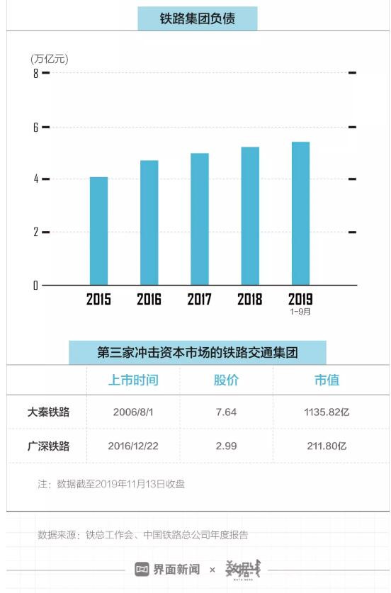 國鐵集團近日披露的三季度財報顯示,截至2019年9月30日,國鐵集團總負債5.41萬億元,負債超過截至6月30日的5.29萬億元,創下歷史新高。