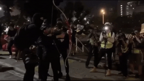 示威者射出點火箭頭