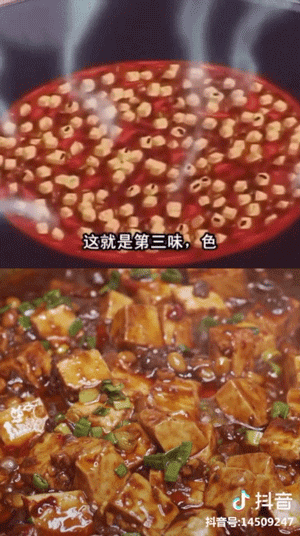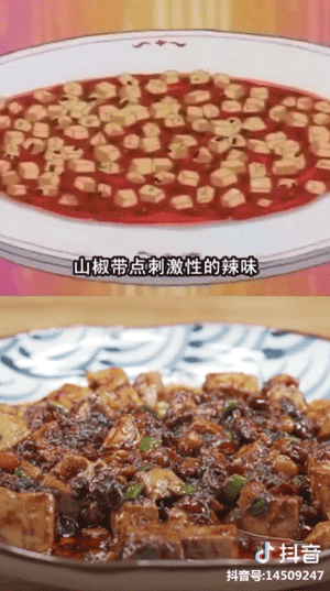 魔幻麻婆豆腐的二次元還原料理,是美食博主“中華小白兔呀”在抖音上的代表作。這位來自成都的萌妹子,通過短短一分鐘不到的視頻,就呈現出了劉昴星製作魔幻麻婆豆腐的全部製作過程: