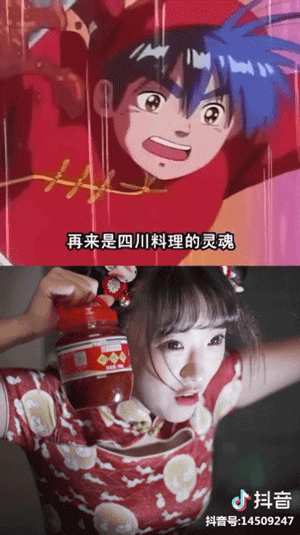 不難看出,傳統的麻婆豆腐與《中華小當家》的魔幻麻婆豆腐之間的區別,其實只是在於絞肉是否是由鮮肉還是用大豆製作。前者傳統美味,後者則讓整道菜呈現了酥脆的口感。而“中華小白兔呀”在視頻中的完美還原,尤其是對動畫分鏡的把握,都不禁讓人覺得她就是小當家的三次元翻版。