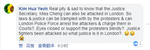 另一位網友則認為,香港律政司長被襲擊是倫敦的恥辱,“得知鄭司長在倫敦被襲擊我感到非常遺憾,同時也非常悲傷。示威者可以踐踏正義和法律,而倫敦的警察到底是會將他們逮捕治罪?還是盲目支持這些示威者的行徑?維護正義的人在倫敦被襲擊,倫敦的正義到底是什麼?”