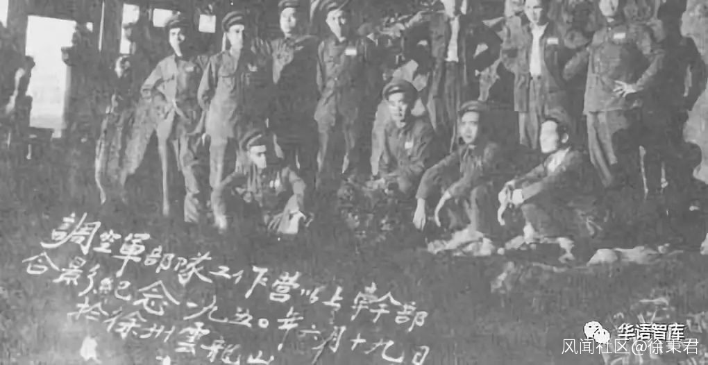 空軍第四混成旅組建時,調空軍部隊工作的陸軍營以上幹部合影。圖片來源:新華網