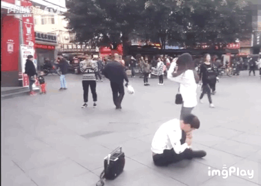 男子當街跪地向女友求婚,接下來發生的一幕……哈哈哈哈哈哈_風聞