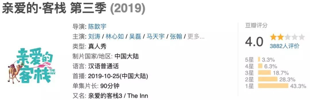 豆瓣4.4降至4.0,播至三期,《親愛的·客棧》第三季遭遇口碑危機。