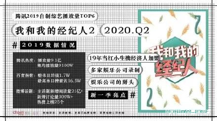 在各大平台2020年招商的名單中,職場元素的綜藝也依然存在。《我和我的經紀人2》將從不同公司選取不同藝人及其經紀人,參加節目;觀察類真人秀《跟着老闆去團建》,將記錄老闆與員工外出“團建”的全過程。